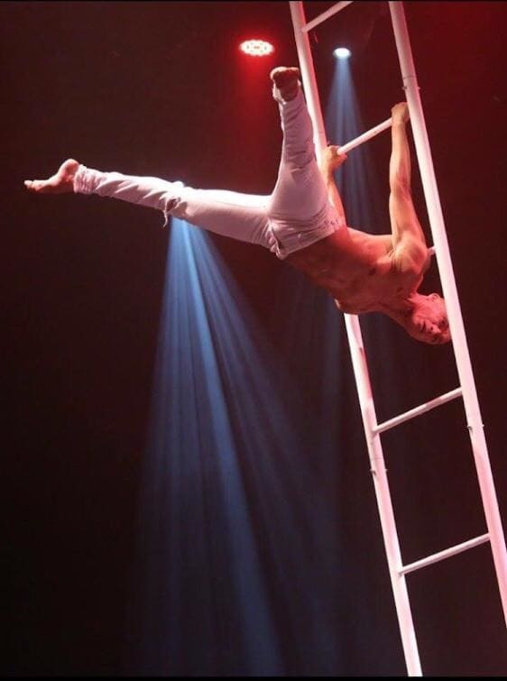 A unique cirque act, involving an aerialist doing a variety of shows on an aerial step ladder.
