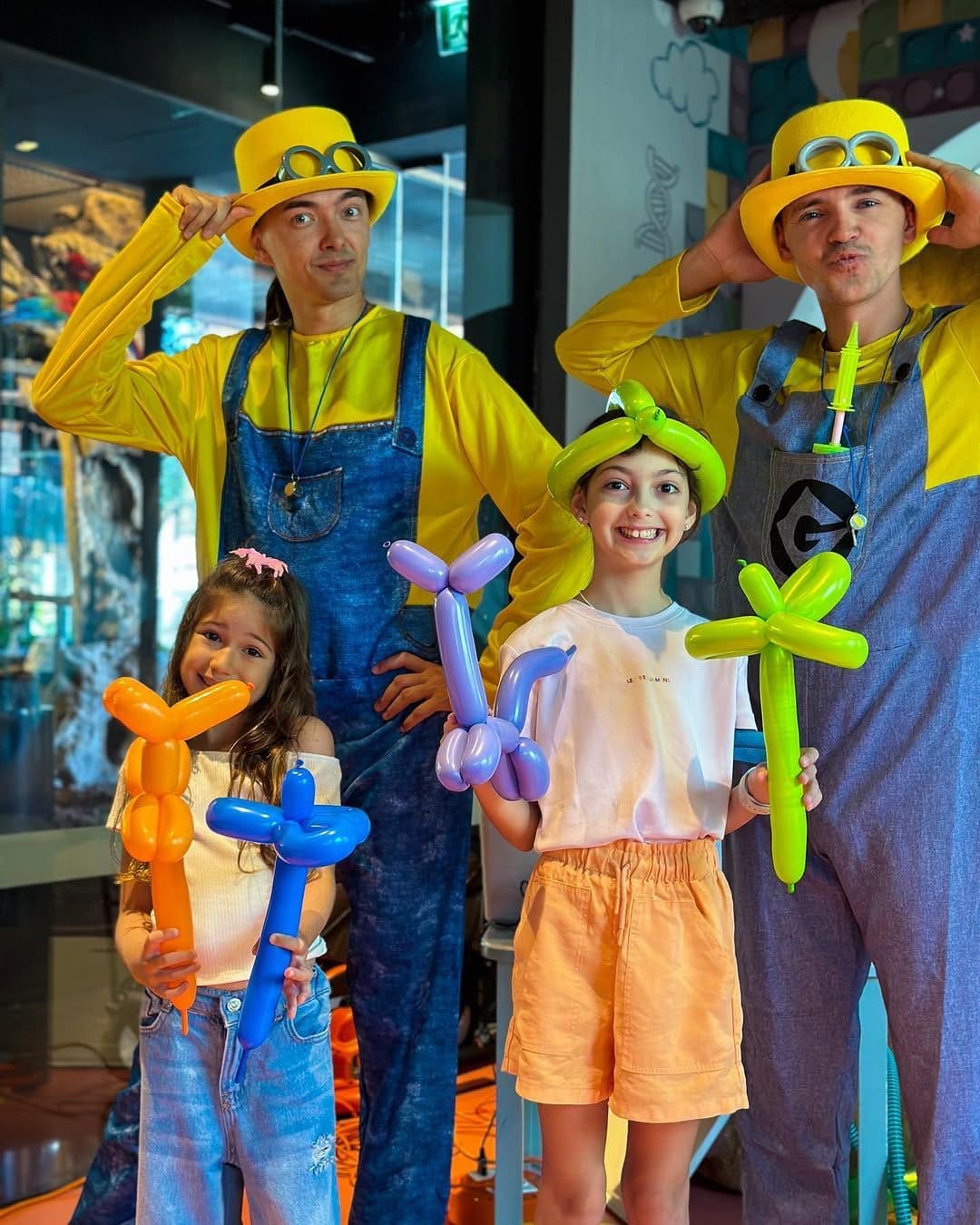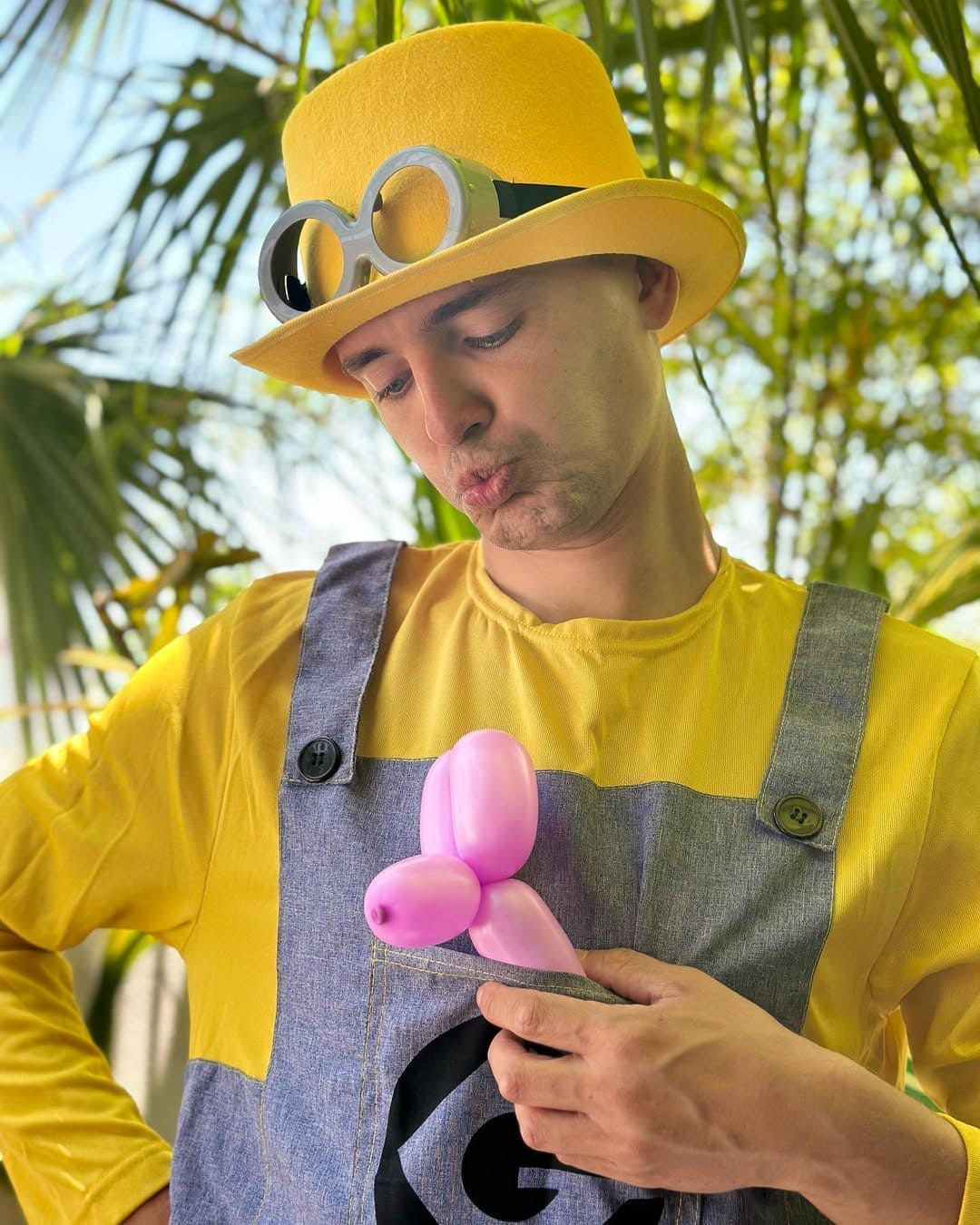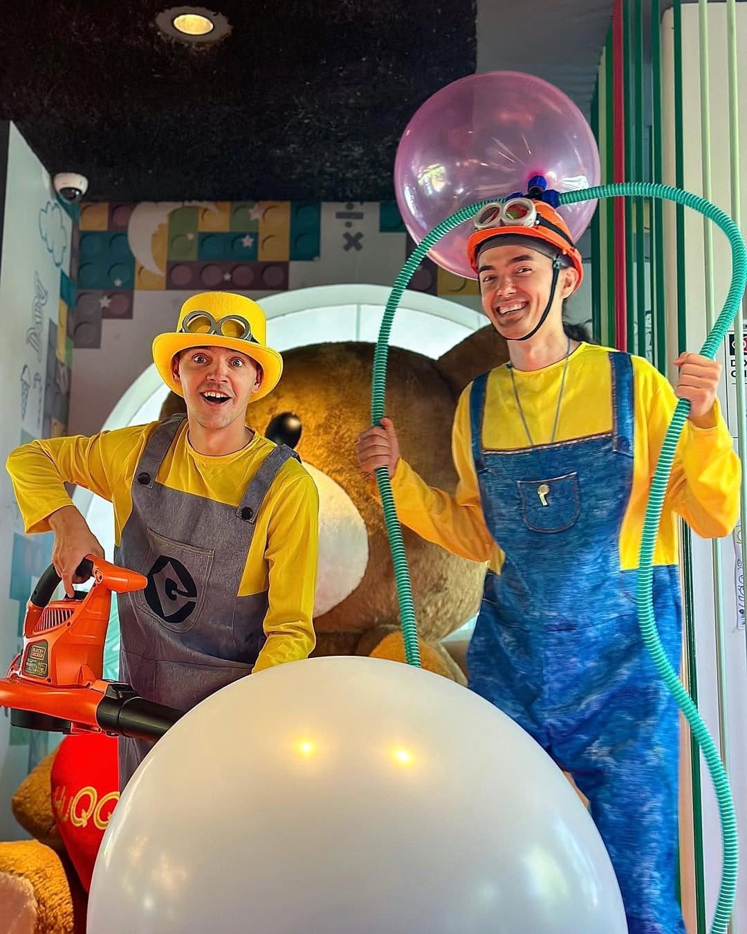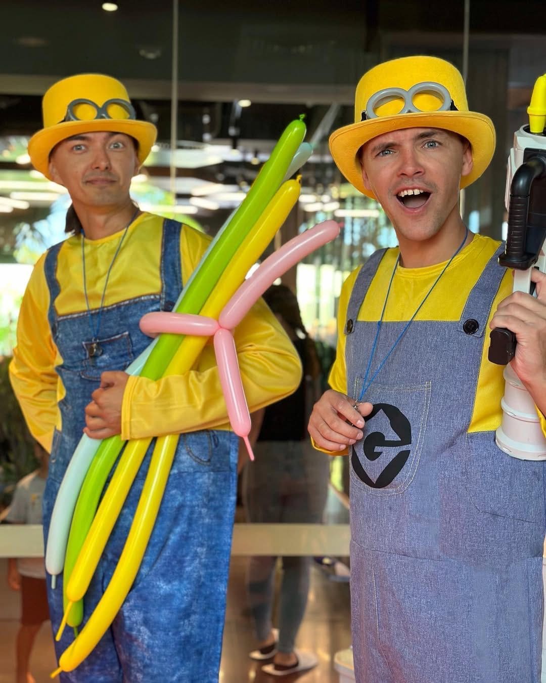 Experience a whirlwind of laughter with two comical minions. They create a spectacle with their balloon artistry, playful pranks and gift every child with a unique balloon figure.