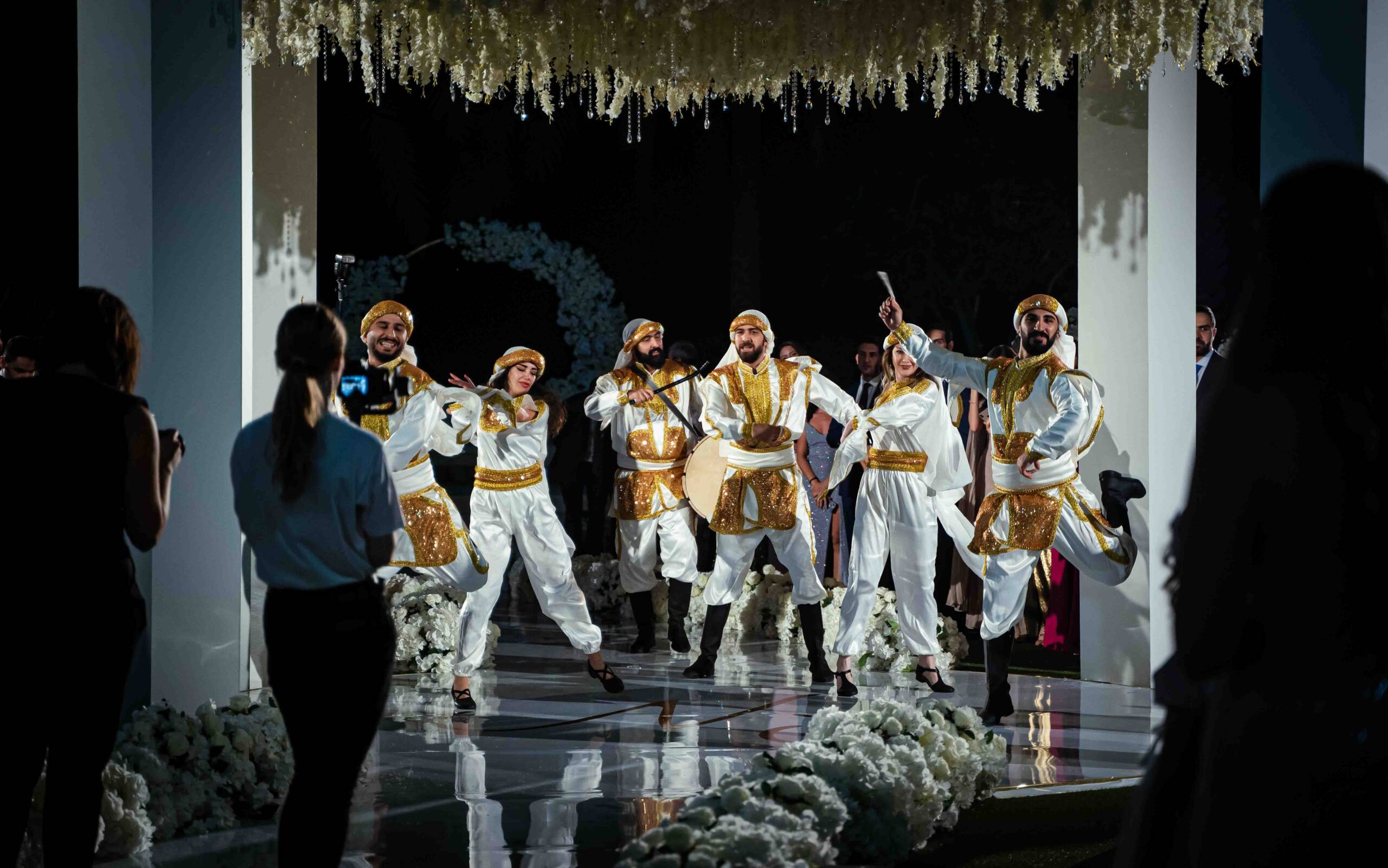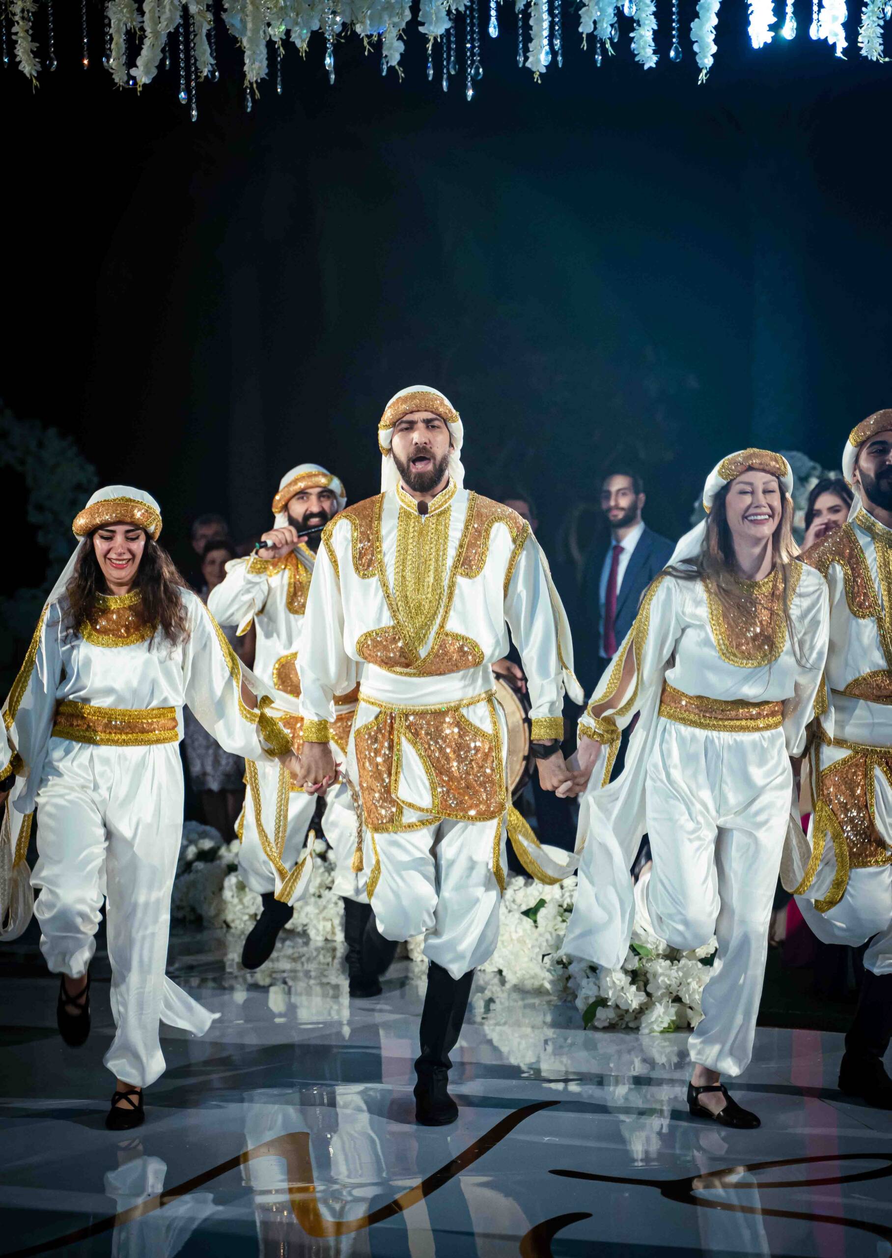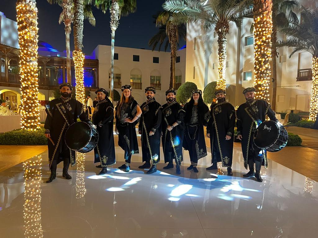 A vibrant and high-energy performance rooted in Middle Eastern tradition. The show begins with the grand Zaffeh entrance, featuring live drummers and musicians creating an exciting atmosphere that immediately engages the audience. Following this, the Dabke dance troupe takes the stage with synchronized footwork, powerful rhythms, and dynamic movements that celebrate unity and joy. The combination of live music, traditional costumes, and interactive choreography makes this performance a perfect highlight for weddings, festivals, and cultural events.