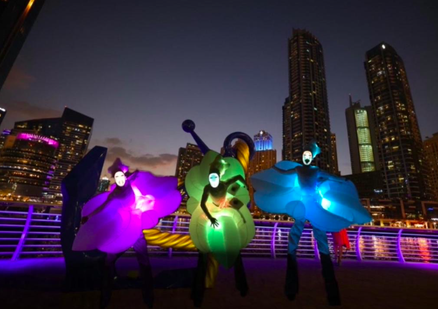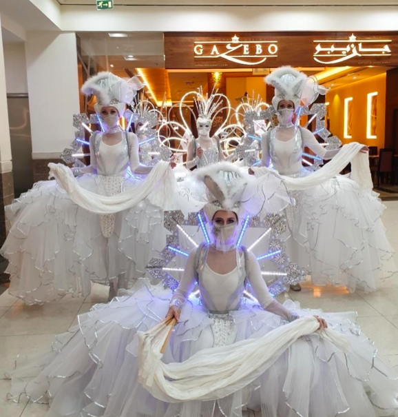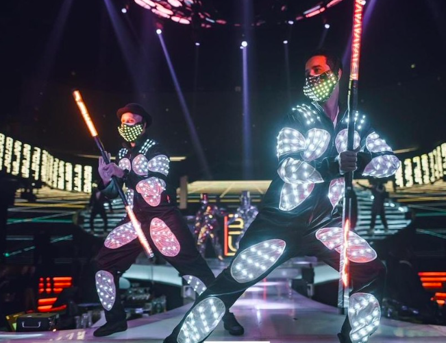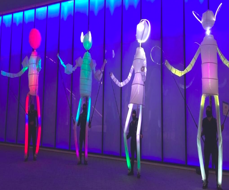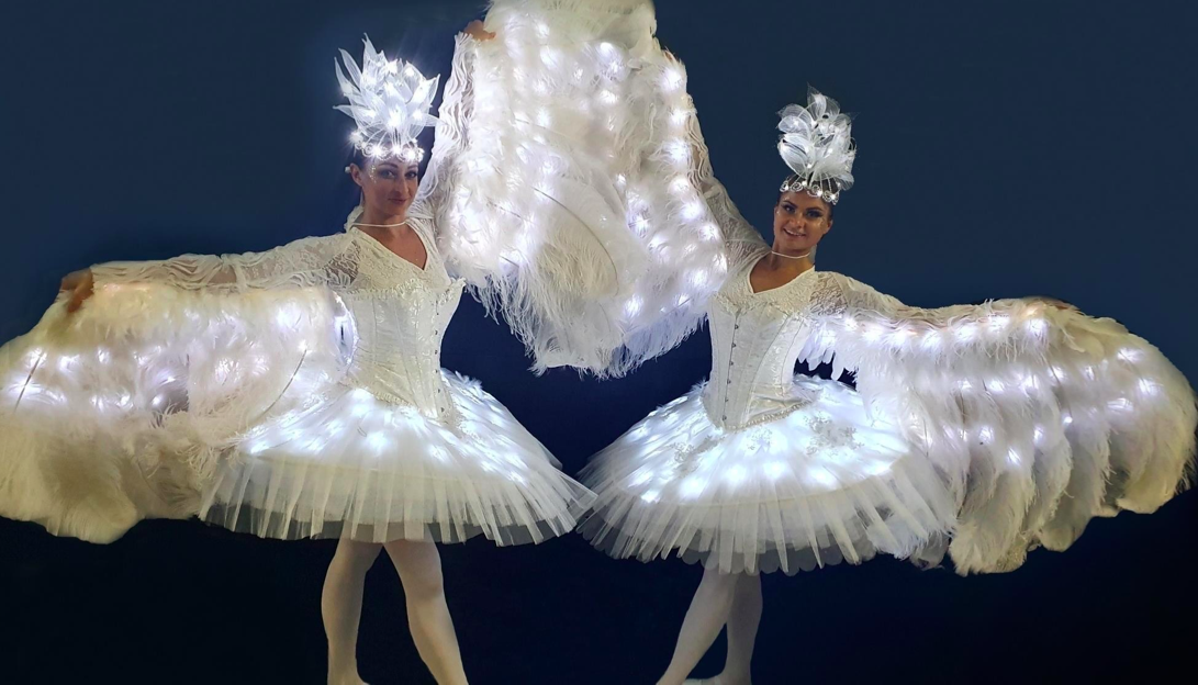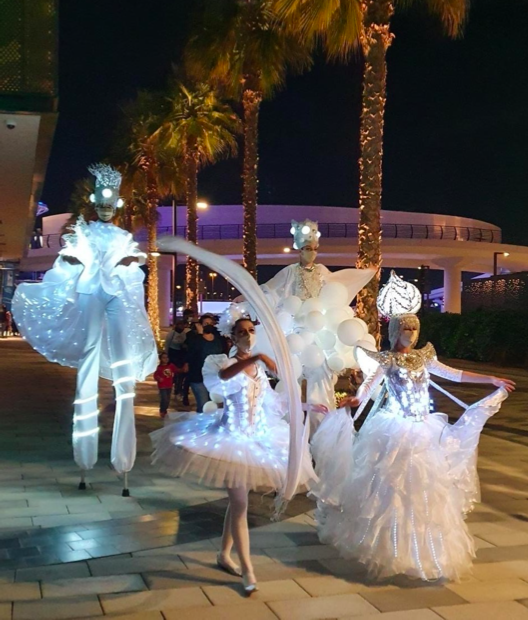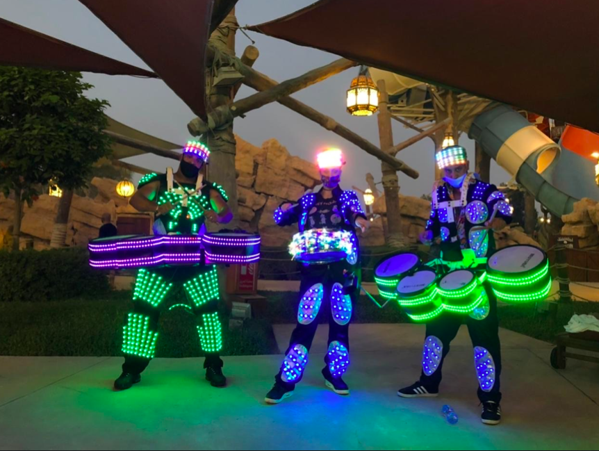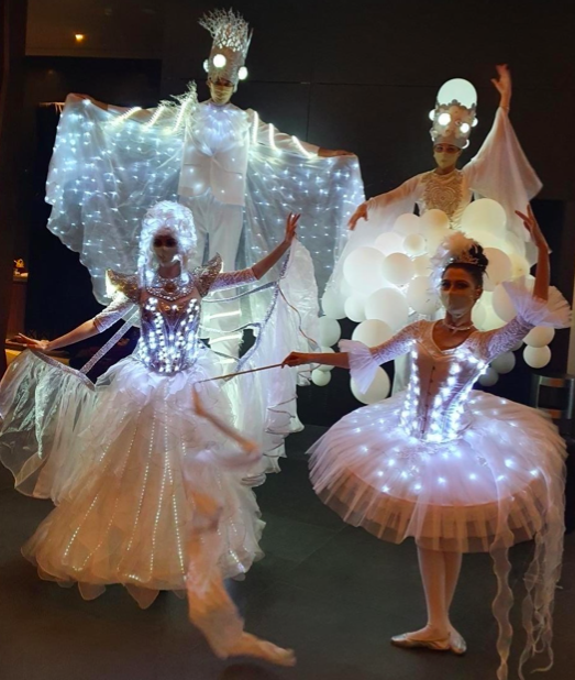 An interactive and visually stunning LED walkabout show that combines dynamic light displays with live performers, engaging the audience through innovative lighting effects and immersive storytelling.A captivating, immersive experience where performers, dressed in stunning LED-lit costumes, move through a crowd, engaging and mesmerizing audiences with dazzling light displays. The performers, often dancers or actors, seamlessly blend movement and technology, creating a dynamic fusion of color, sound, and energy. As they interact with their environment, their outfits—embedded with programmable LED lights—shift in patterns, colors, and intensity, responding to sound, motion, or pre-programmed sequences.