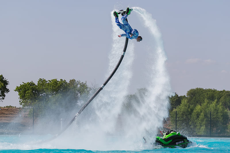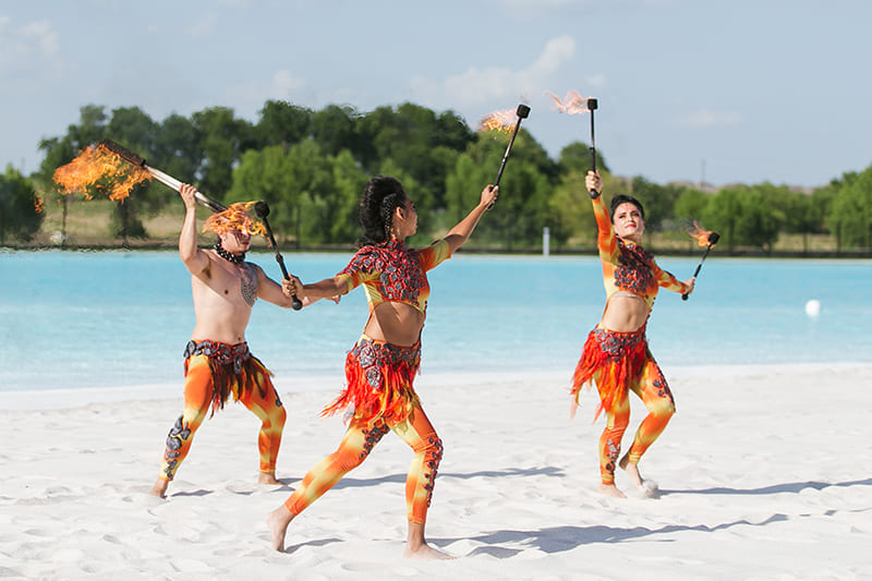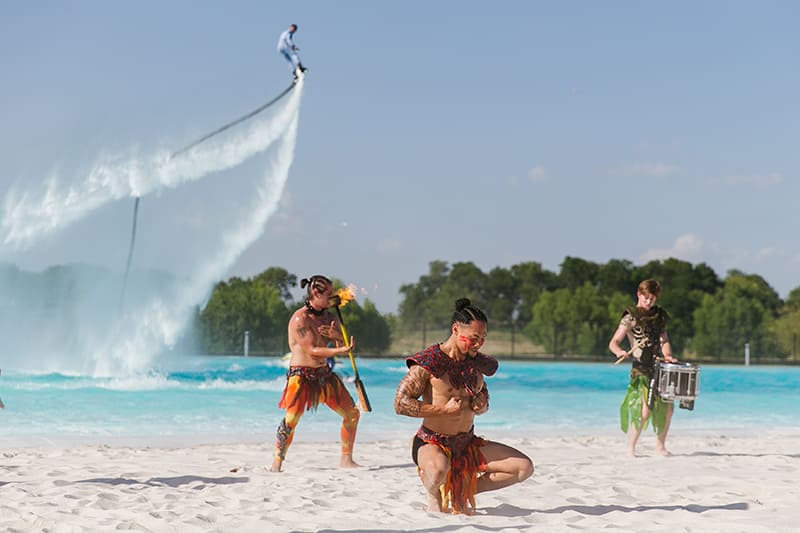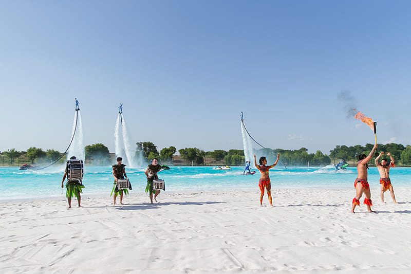 It is a breathtaking, fully choreographed spectacle that fuses flyboards, jetskis, jet surfs, fire dancers, and drummers. The show spans across water and sky, creating a 360° immersive experience that keeps the audience on the edge of their seats. With performers soaring to incredible heights, jets carving through the waves, and fire, every moment is packed with energy and excitement. The rhythm of live drumming ties it all together, building anticipation for the grand finale where every element unites in perfect harmony. This unforgettable experience is guaranteed to leave audiences in awe.